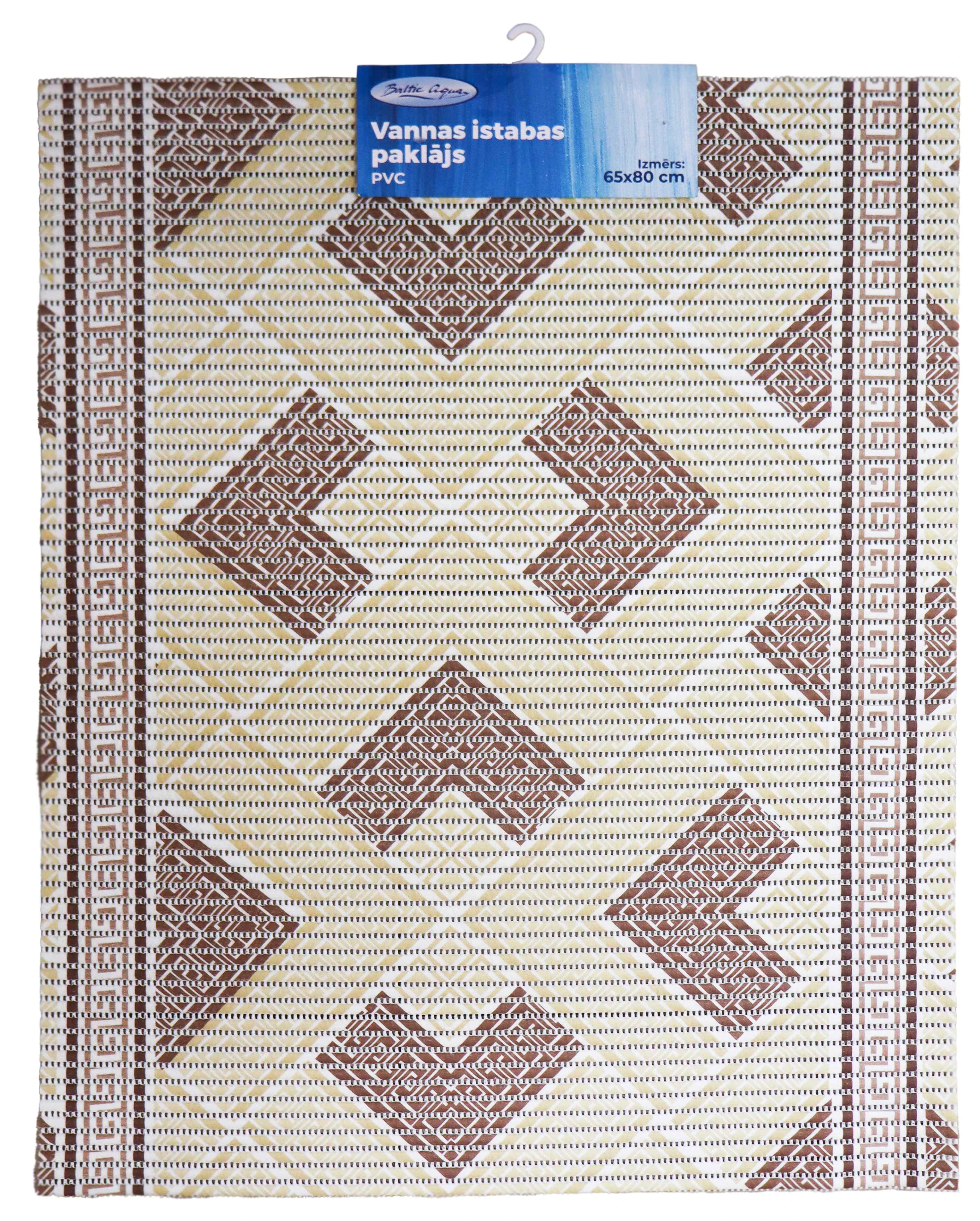 Vannas istabas paklājs ar ģeometrisku rakstu brūnos toņos izgatavots no augstas kvalitātes PVC (polivinilhlorīda), tas nodrošina izturību un vieglu kopšanu. Tas ir ideāli piemērots, lai nodrošinātu komfortu un siltumu jūsu kājām pēc dušas vai vannas. Turklāt PVC materiāls nodrošina vieglu tīrīšanu, padarot šo paklāju par lielisku izvēli ikdienas lietošanai. Izmērs 80 x 65 cm.