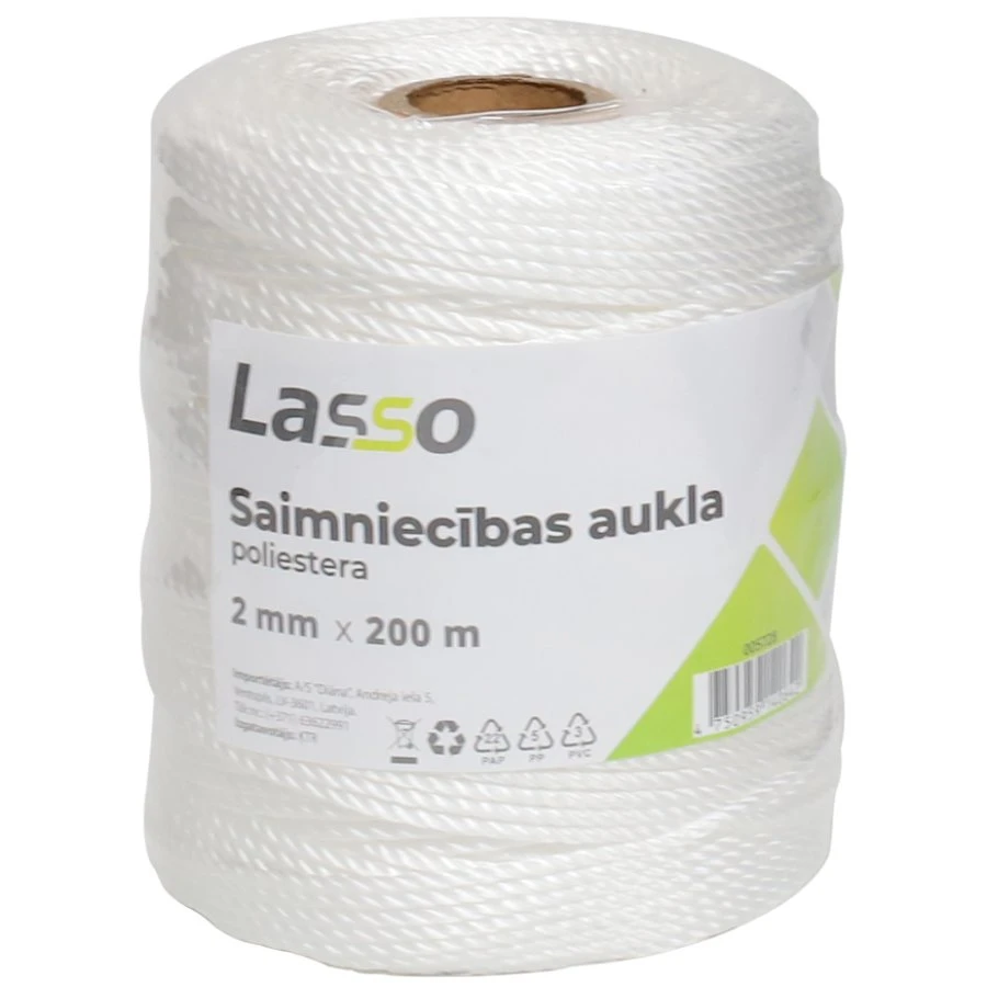 Lasso poliestera saimniecības aukla ir izturīga un universāla aukla, kas lieliski piemērota dažādiem saimniecības, dārzkopības un iepakošanas darbiem. Izgatavota no augstas kvalitātes poliestera, tā nodrošina augstu noturību pret mitrumu, UV starojumu un mehānisku spriedzi, saglabājot savas īpašības pat ilgstošā lietošanā. Auklas diametrs ir 2 mm un garums 200 metri, kas padara to par ideālu risinājumu plaša mēroga darbiem. Pateicoties baltajai krāsai un gludajai struktūrai, tā ir viegli lietojama un estētiski pievilcīga. Lasso poliestera aukla ir uzticams palīgs gan mājsaimniecībā, gan profesionālā darbā.