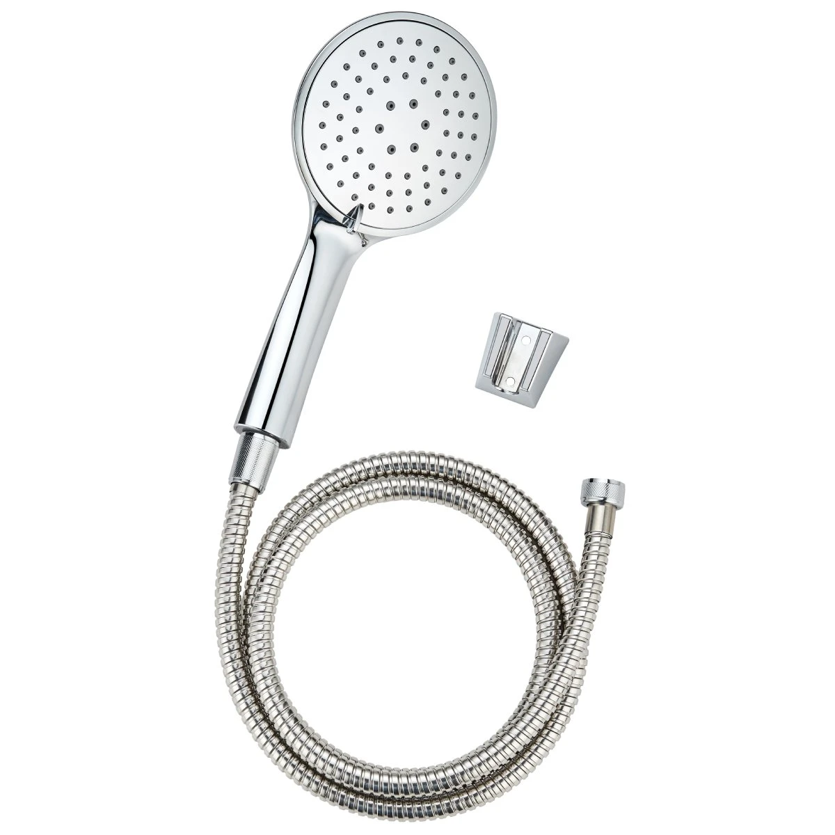 AB dušas komplekts ir hromēts vannas istabas risinājums ar 3 ūdens plūsmas režīmiem, kas nodrošina luksusa dušas pieredzi ar maksimālu komfortu un funkcionalitāti. Šis pilnīgais komplekts ietver lielu dušas galviņu ar trīs dažādiem strūklu veidiem, augstas kvalitātes hromētu šļūteni un elegantu sienas stiprinājumu, kas ļauj izveidot profesionālu dušas sistēmu. Dušas galviņas trīs režīmi nodrošina plašu ūdens plūsmas spektru no maiga lietus efekta līdz intensīvam masažas režīmam, ļaujot pilnībā personalizēt dušas procedūru atbilstoši noskaņojumam un vajadzībām. Hromētā apdare ne tikai rada greznu izskatu, bet arī garantē izcilu izturību pret mitrumu, koroziju un ikdienas nolietojumu, vienlaikus atvieglojot tīrīšanu un apkopi. Lielais dušas galvas izmērs nodrošina plašāku ūdens pārklājumu un ekskluzīvu dušas pieredzi. Dušas galvas diametrs 12 cm, kopējais garums 24.5 cm, dušas pievada garums 150 cm.