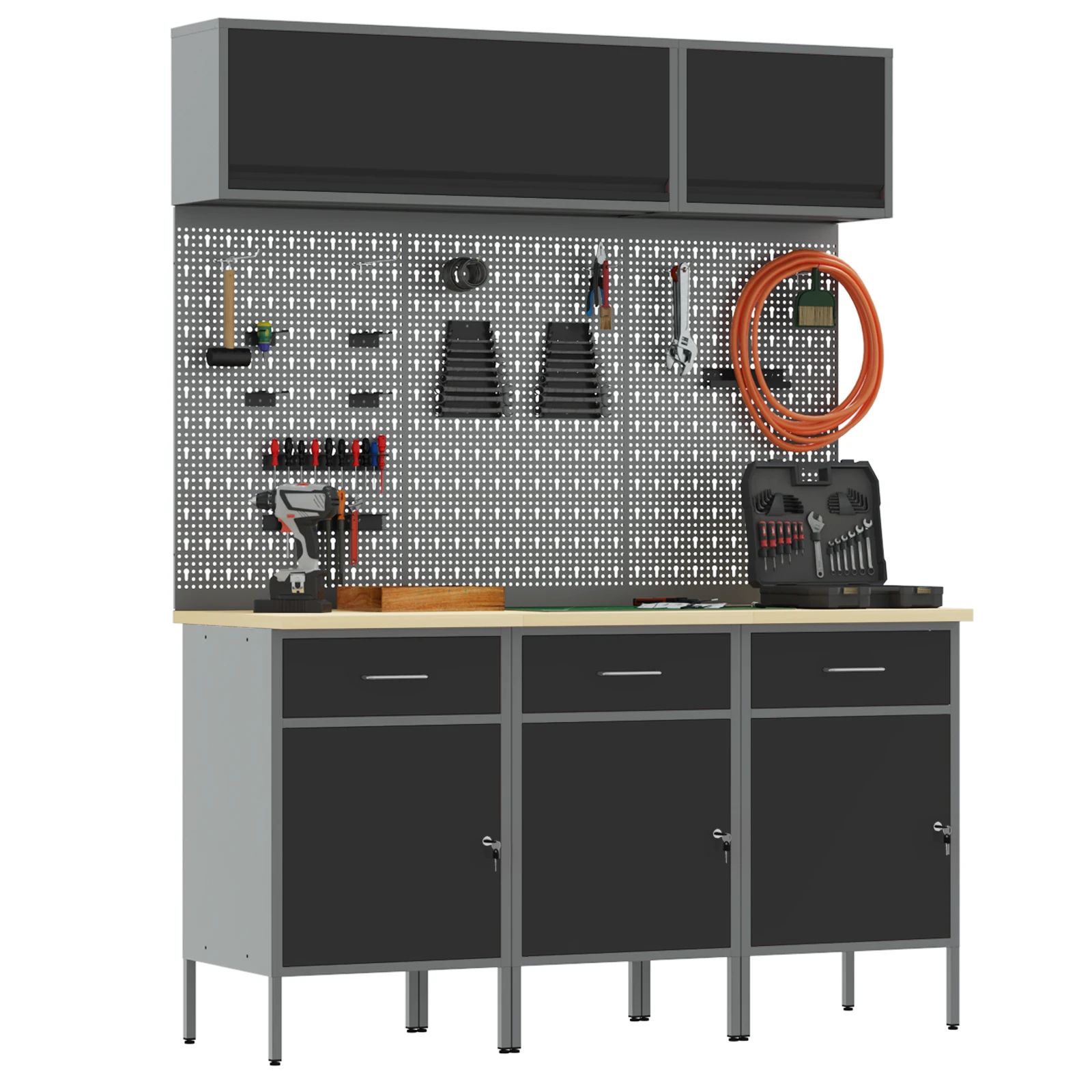 vidaXL Darba skapju komplekts ar atvilktni ar slēdzeni 10 pcs Sarkana