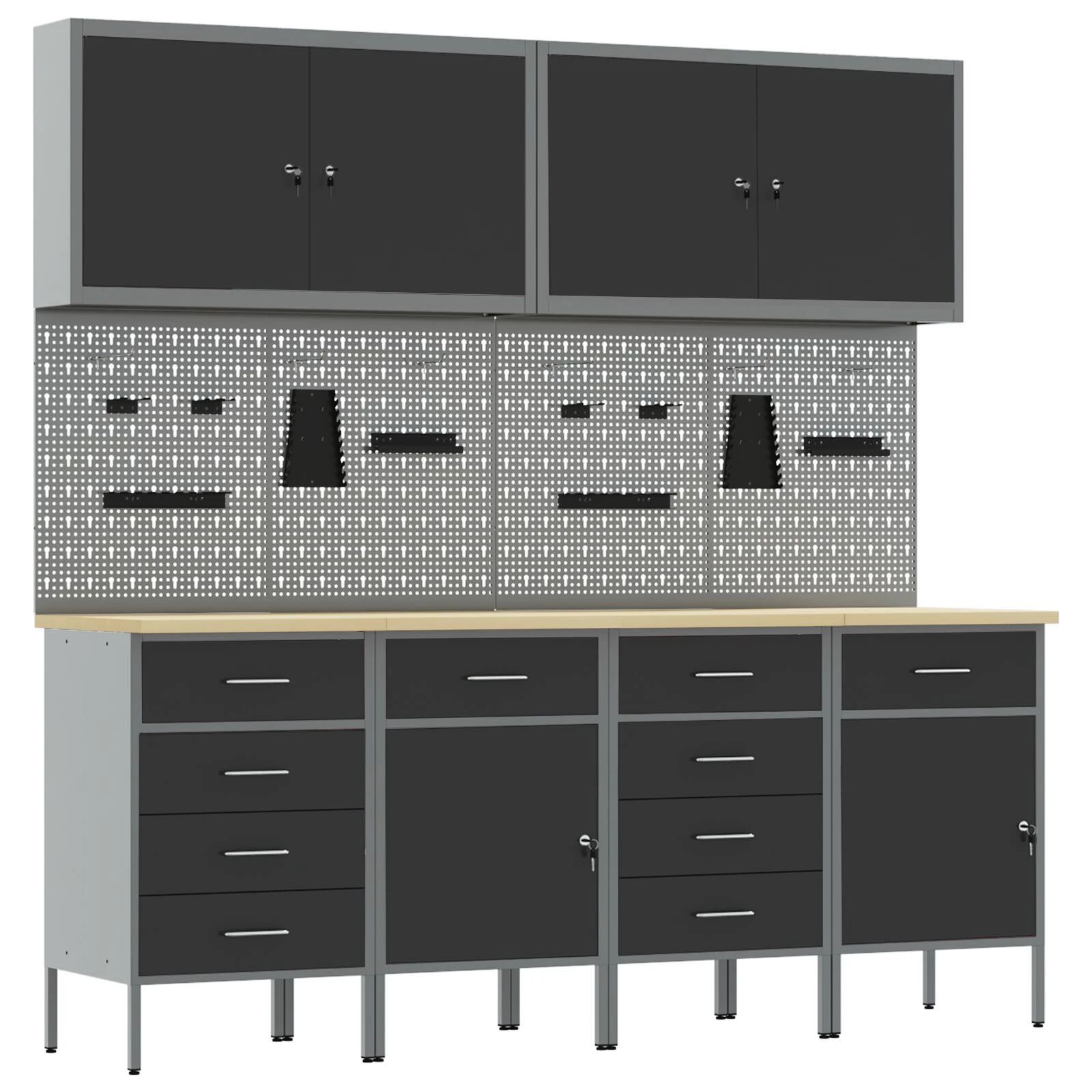 vidaXL Darba skapis ar atvilktni 10 pcs Melna 200 x 55 x 200 cm