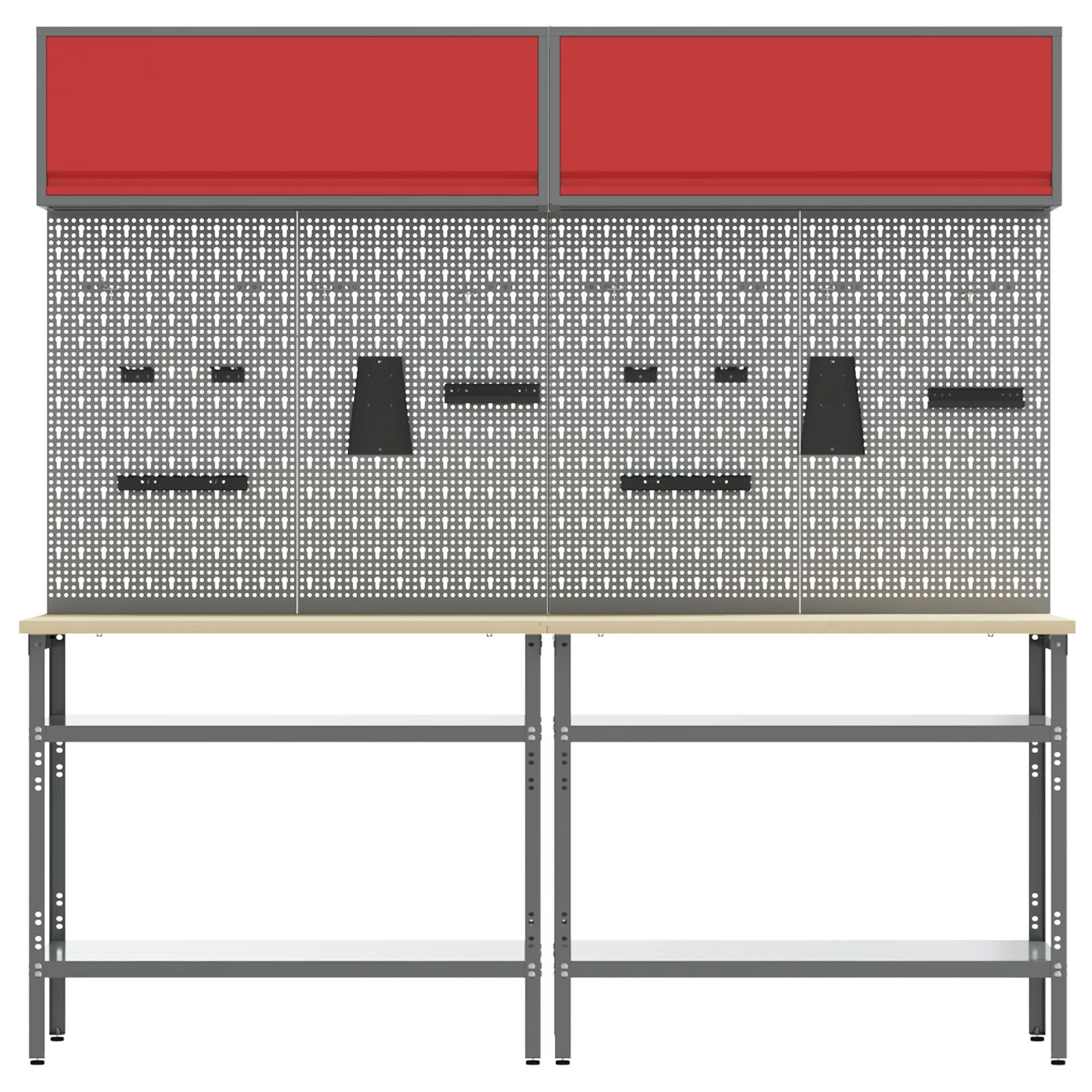 Šis tērauda darba galda komplekts ir perfekts funkcionalitātes un rūpnieciskā stila apvienojums. Tas ir ideāli piemērots gan profesionālām darbnīcām, gan mājas garāžām. Taisnstūra galds ir veidots, lai izlīdzinātu smagus uzdevumus, piedāvājot elegantu dizainu un gludu virsmu, kas izskatīsies lieliski jebkurā darba vietā. Ar metāla plauktiem, kas sniedz pietiekamu uzglabāšanu, šis galds ir lielisks izvēle instrumentu un piederumu organizēšanai, ļaujot tev strādāt efektīvāk. Iedomājies šo galdu kā savu darba vietas centru, radot atmosfēru profesionalitātes un stila.