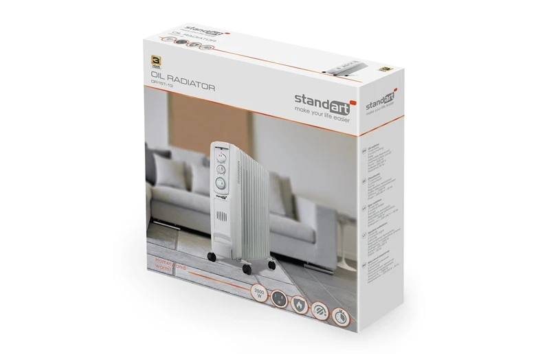 Zīmols- Standart. Modelis- OR15T-13. Elektriskā sildītāja tips- Smērviela. Platums- 61 cm. Dziļums- 16.2 cm. Augstums- 66 cm. Svars- 15.3 kg. Krāsa- Balta. Jauda- 2500 W. Apsildāmā platība- 25 - 25m². Taimeris- Jā. Jaudas līmeņi- 3. Termostats- Jā. Sildīšanas sekciju skaits- 13. Aizsardzība pret pārkaršanu- Jā. Ventilators- Nē. Vadība- Mehānisks. Obligātā garantija- 24 mēn.