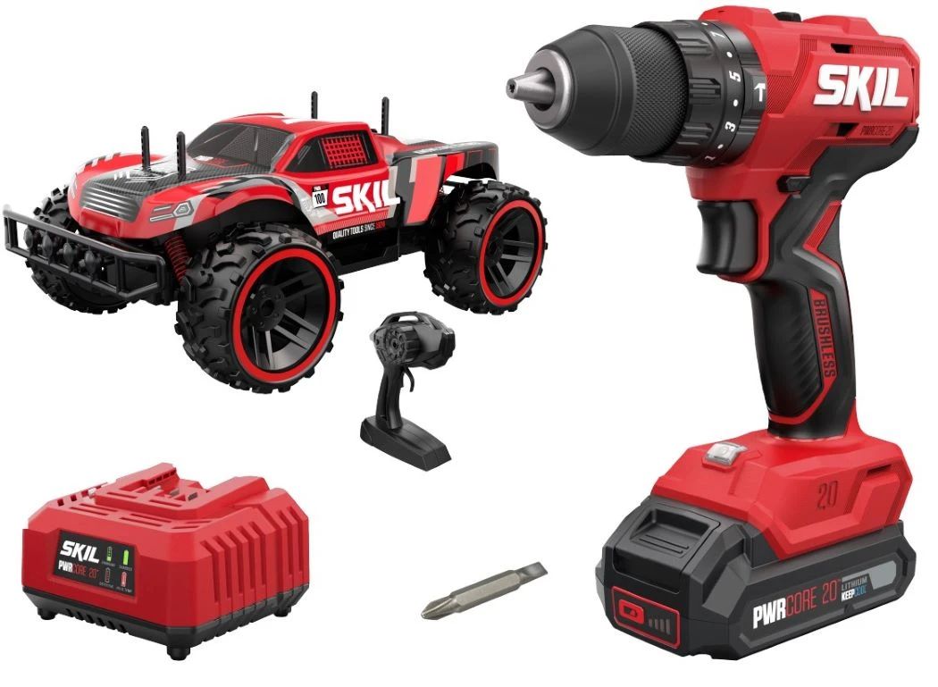 Maksimālais griezes moments, Nm- 55. Apgriezienu skaits tukšgaitā- 0-1700, 0-450. Sitienu skaits minūtē- 25500. Elektriskā dzinēja tips- Bezsuku. Obligātā garantija- 24 mēn. Āmura režīmi- Jā. Ātrumu skaits- 2. Zīmols- Skil. Artikuls- 3021RC. Svars- 1.74 kg. Stobra diametrs- 13 mm. Maks. urbšanas diametrs kokā- 50 mm. Maks. urbšanas diametrs tēraudā- 13 mm. Maks. urbšanas diametrs betonā- 13 mm. Akumulators iekļauts komplektā- Jā. Akumulatora tips- Li-ion. Akumulatoru skaits komplektā- 1. Akumulatora spriegums- 20 - 20V. Lādētājs iekļauts- Jā. Soma komplektā- Nē. Uzlādes līmeņa indikators- Jā. Uzgaļu komplekts iekļauts- Nē. Iebūvēts LED apgaismojums- Jā. Papildus informācija- Komplektā: Radiovadāma mašīnīte, 1x 2ah akumulators.