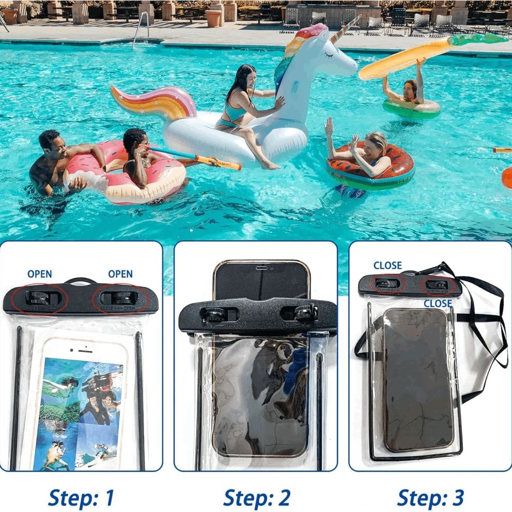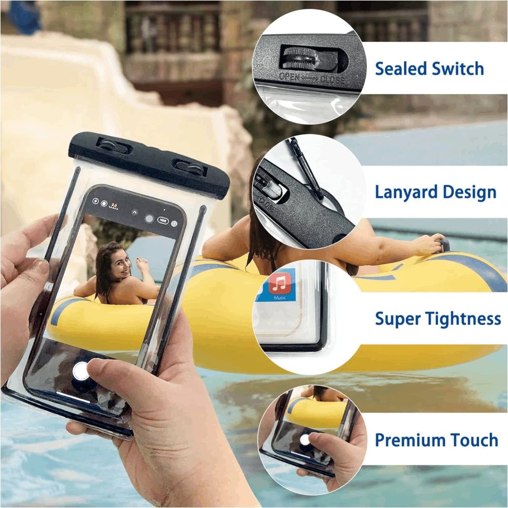 Ūdensizturīgs mobilā tālruņa maciņš. Vienkārša aizdare, viegli pasargājama no ūdens, sniega, putekļiem, smiltīm un netīrumiem; Komplektā ietilpst kakla siksna ērtai nēsāšanai, piemērots pludmalei, makšķerēšanai, peldēšanai, laivošanai, airēšanai ar kajaku, snorkelēšanai un aktivitātēm akvaparkā.