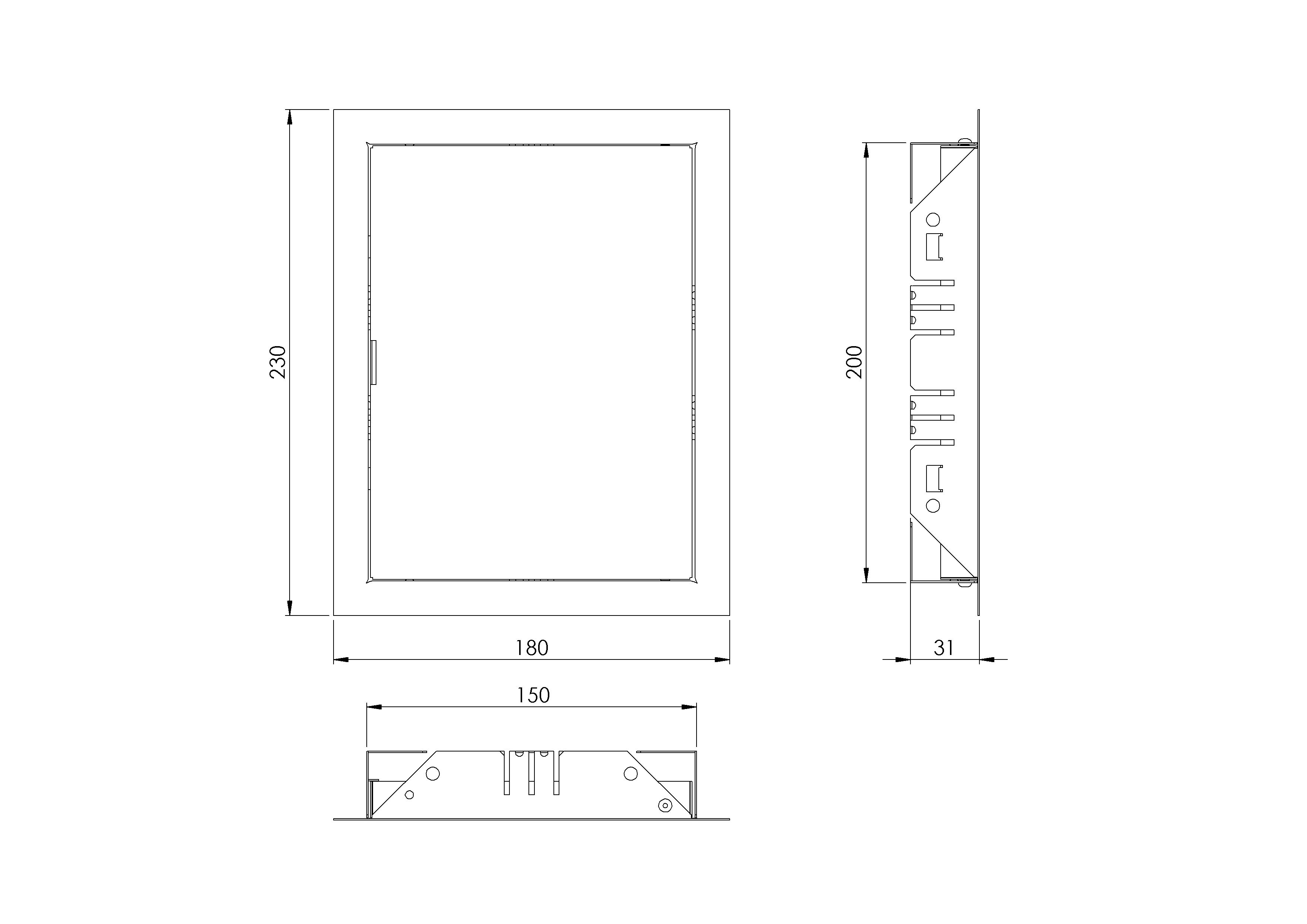 Zīmols- -. Iekšējais garums- 150 mm. Lekšējais platums- 200 mm. Ārējais garums- 150 mm. Ārējais platums- 200 mm. Augstums- 20 mm. Materiāls- Metāls. Krāsa- Balta. Ar slēdzeni- Nē.