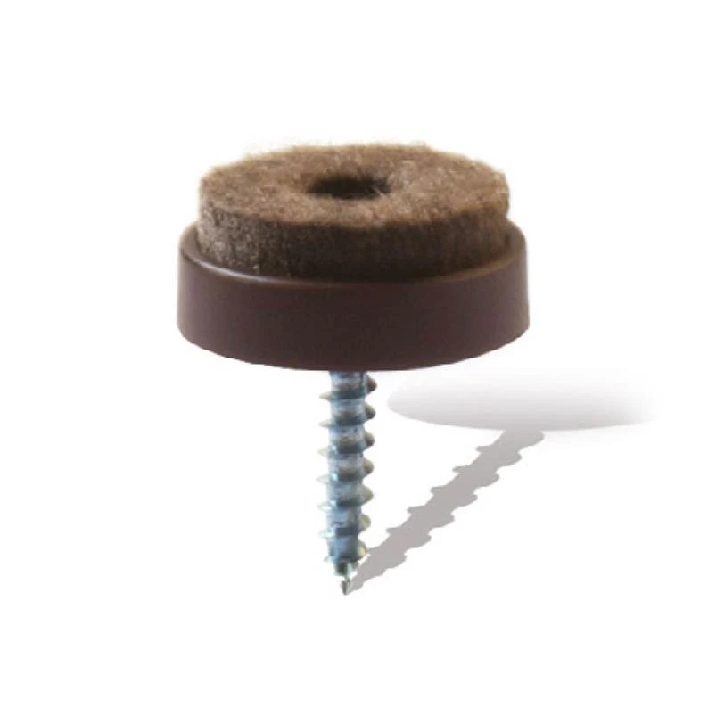 Preču zīmols- Haushalt. Diametrs- 2 cm. Krāsa- Brūna. Materiāls- Metāls. Plastmasa. Filcs. Piestiprinājums- Skrūvējami. Vienības iepakojumā- 8.