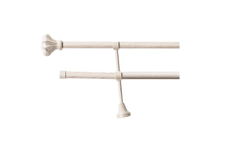 Preču zīmols - Domoletti. Garums - 300 - 300cm. Diametrs - 19 mm. Karnīša tips - Stieņa. Karnīša stiprinājums - Pie sienas. Piemērots vannas istabai - Nē. Krāsa - Balta. Materiāls - Metāls. Turētāji komplektā - Jā. Papildus informācija - 30 gab. gredzeni ar aizdariem.