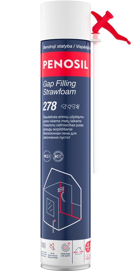 Zīmols- Penosil. Tilpums- 750 ml. Darba temperatūra- -10 - 30°C. Siltumvadītspējas koeficients, W/(mk)- 0.033. Papildus informācija- Vissezonu celtniecības putas spraugu aizpildīšanai.. Metāla apsmidzināšanai- Jā.