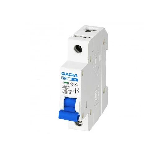 Zīmols- Gacia. Modelis- SB6L1PC16. Fāžu skaits- 1. Poli- 1P. Atvienošanas līkne- C. Atvienošanas spēja, kA- 6. Strāvas stiprums- 16 A. Spriegums- 230 V. Selektivitātes klase- C. Ciklu skaits- 1000.