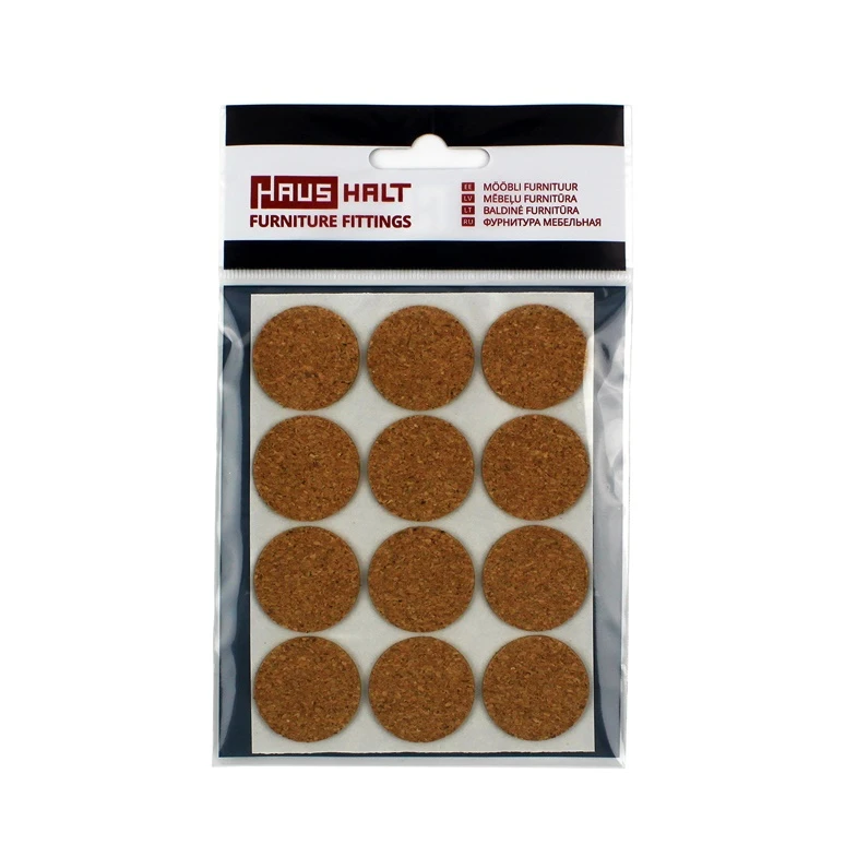 Zīmols- Haushalt. Diametrs- 2.8 cm. Krāsa- Brūna. Materiāls- Korķis. Stiprinājums- Līmējošs. Vienību skaits iepakojumā- 12. Obligātā garantija- 24 mēn. Garantija juridiskām personām- 12 mēn.