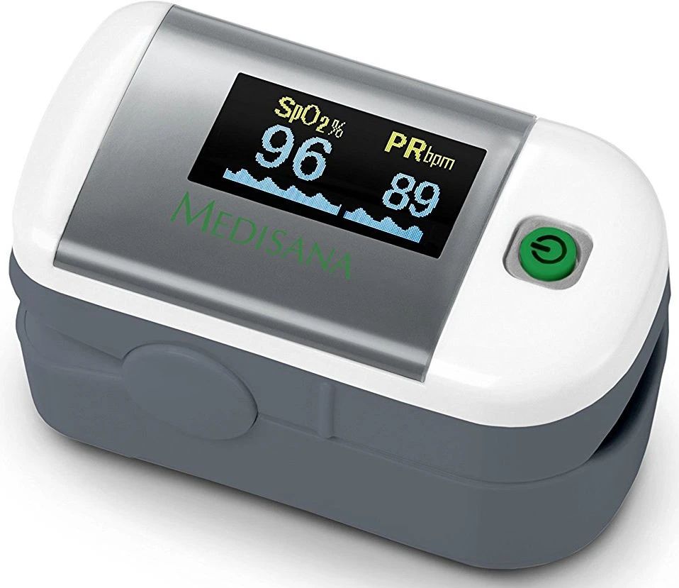 Zīmols- Medisana. Modelis- PM100 79455. Papildus informācija- Nosaka arteriālao skābekļa daudzumu (SpO2) un sirds pulsa ātrumu. Izmēri: 58 x 35 x 34 mm. Darbojas ar 2 x AAA tipa baterijām..