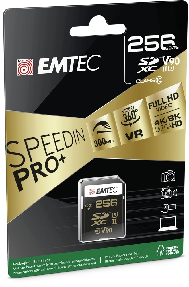 Emtec SDXC UHS-II U3 V90 atmiņas karte piedāvā neticamu veiktspēju, kas nodrošina ātru lietotņu, fotoattēlu un video lejupielādi, pārsūtīšanu un kopīgošanu.