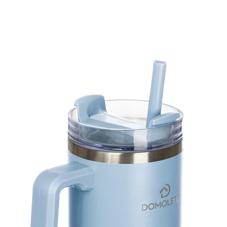 Zīmols- Domoletti. Artikuls- RH628A2. Tilpums- 0.89 l. Krāsa- Gaiši zila. Materiāls- Plastmasa, Nerūsējošais tērauds. Siltuma saglabāšanās līdz- 12 h. Aukstuma saglabāšana līdz- 12 h. Komplekts- Ar salmiņu. Obligātā garantija- 24 mēn.