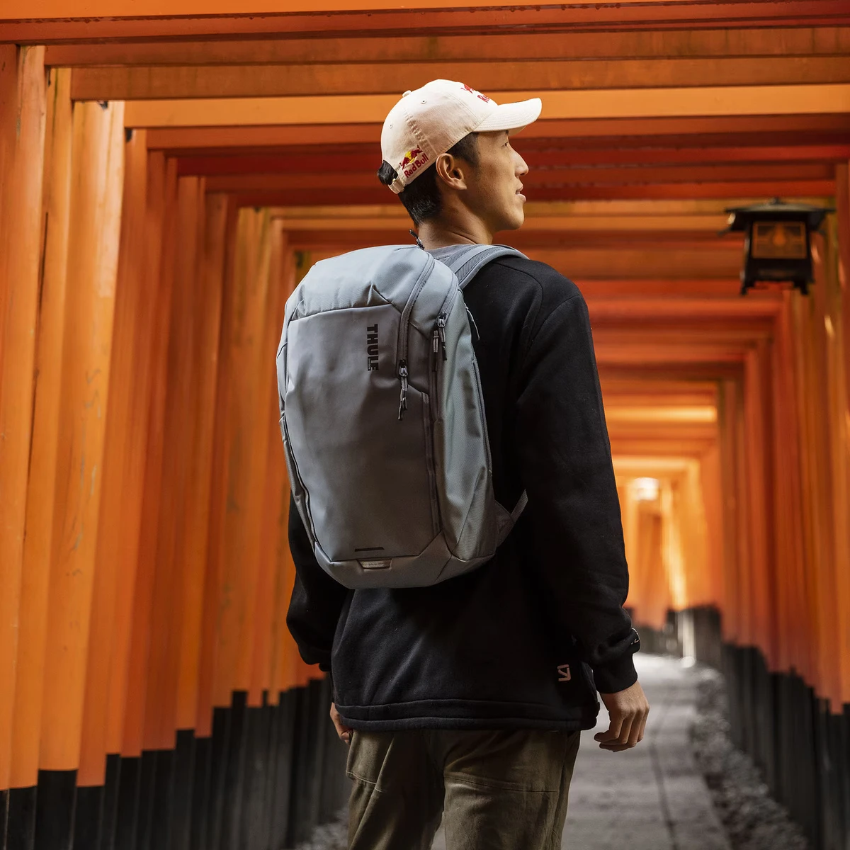Bagāžas cauri izlaižamā siksna ļauj piestiprināt mugursomu ripojošai bagāžai, lai ceļotu bez piepūles