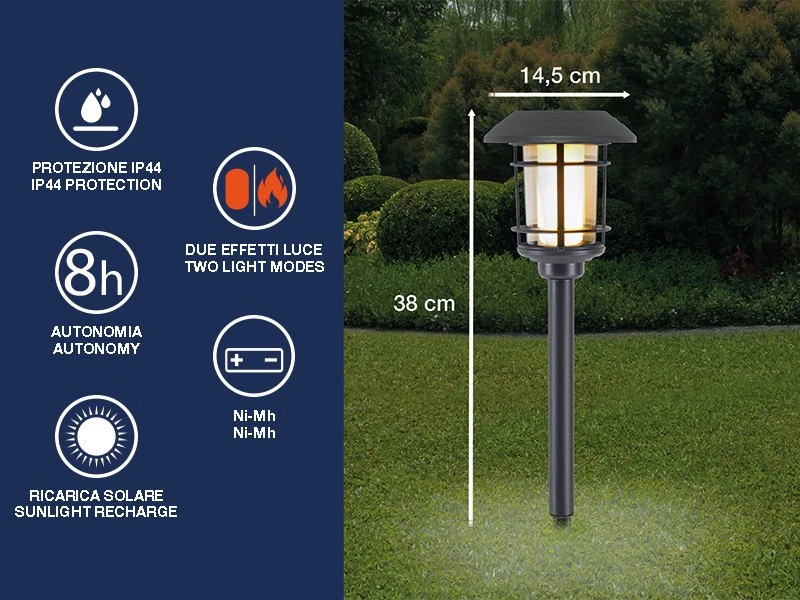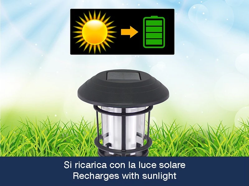 Pateicoties saules gaismas enerģijai, lampa automātiski ieslēdzas tumsā un izslēdzas dienasgaismā.