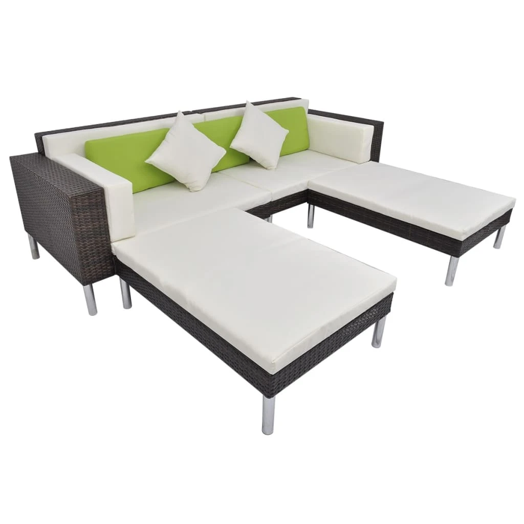 vidaXL 4-daļīgs dārza atpūtas mēbeļu komplekts ar matračiem, PE, brūns