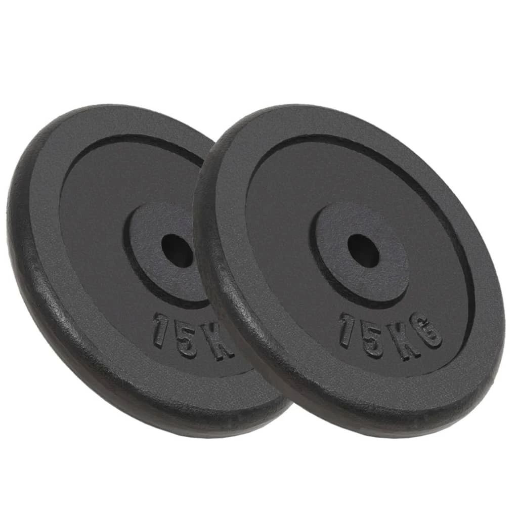 Šajā komplektā ietilpst 2 svara diski, kas katrs sver 15 kg. Izmantojot diskus kopā ar svaru stieni, izliekto svaru stieni vai hanteles stieni, kura diametrs ir 30 mm, jūs varēsiet lieliski trenēt un palielināt muskuļus. Diskus var izmantot gan mājās, gan sporta zālē.