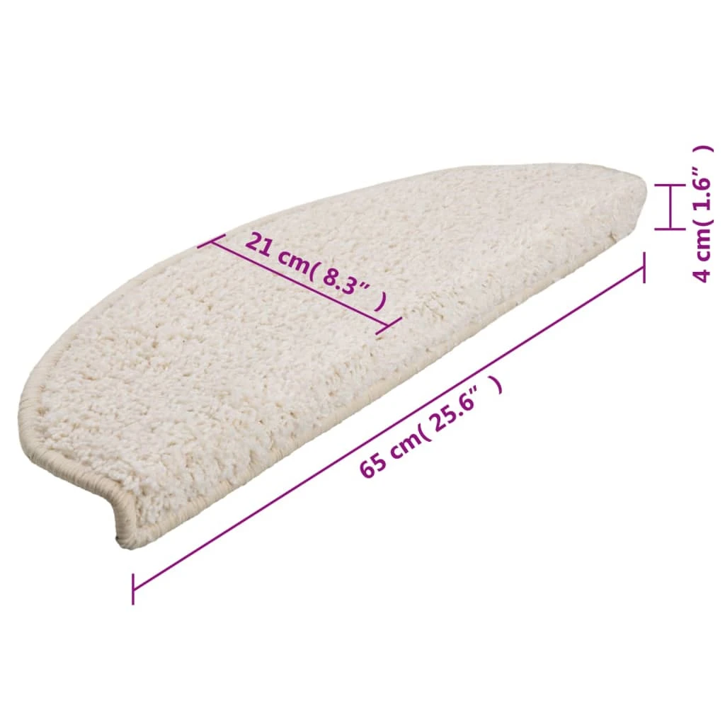 vidaXL kāpņu paklājiņi, 15 gab., 65x21x4 cm, balti, pusapaļi, lieli