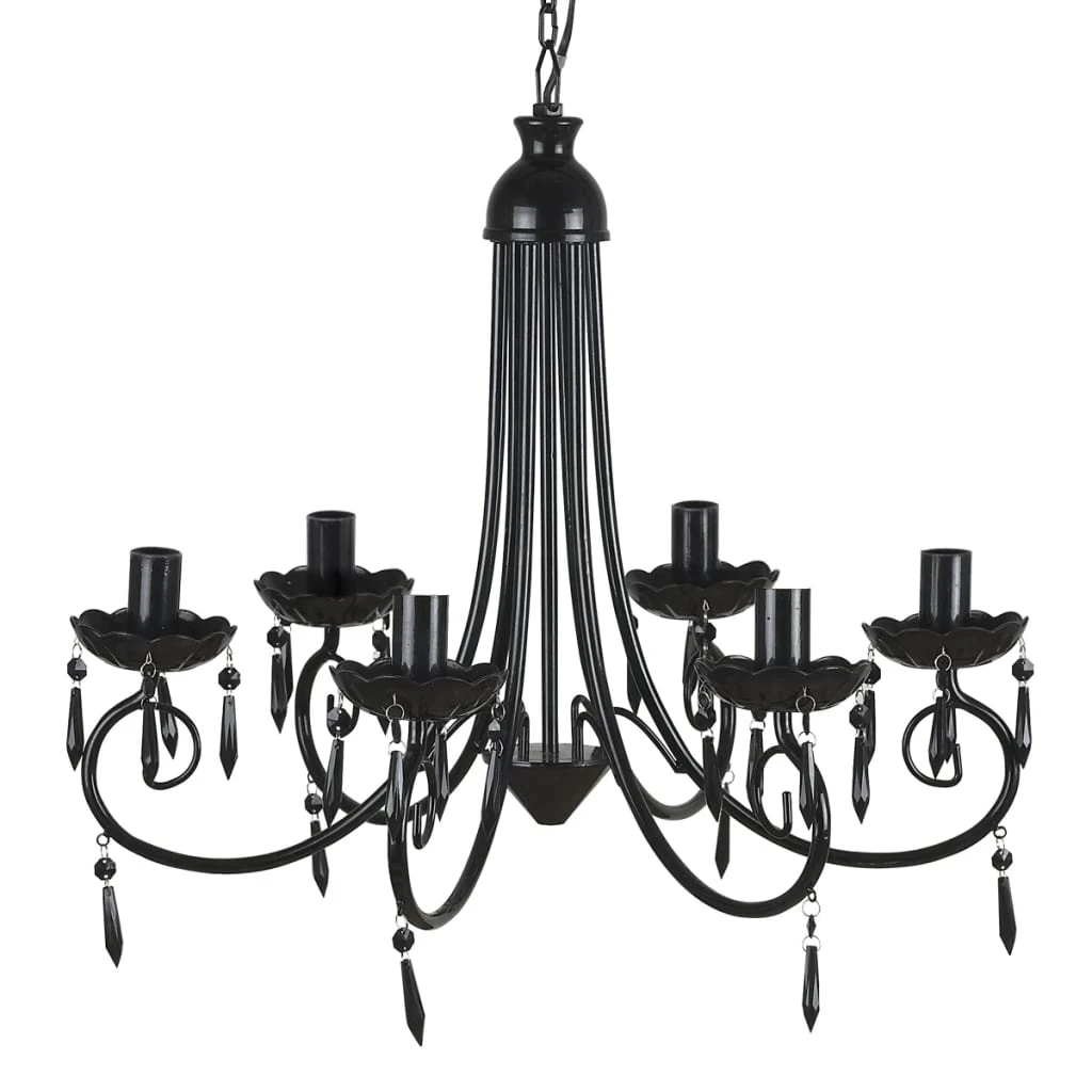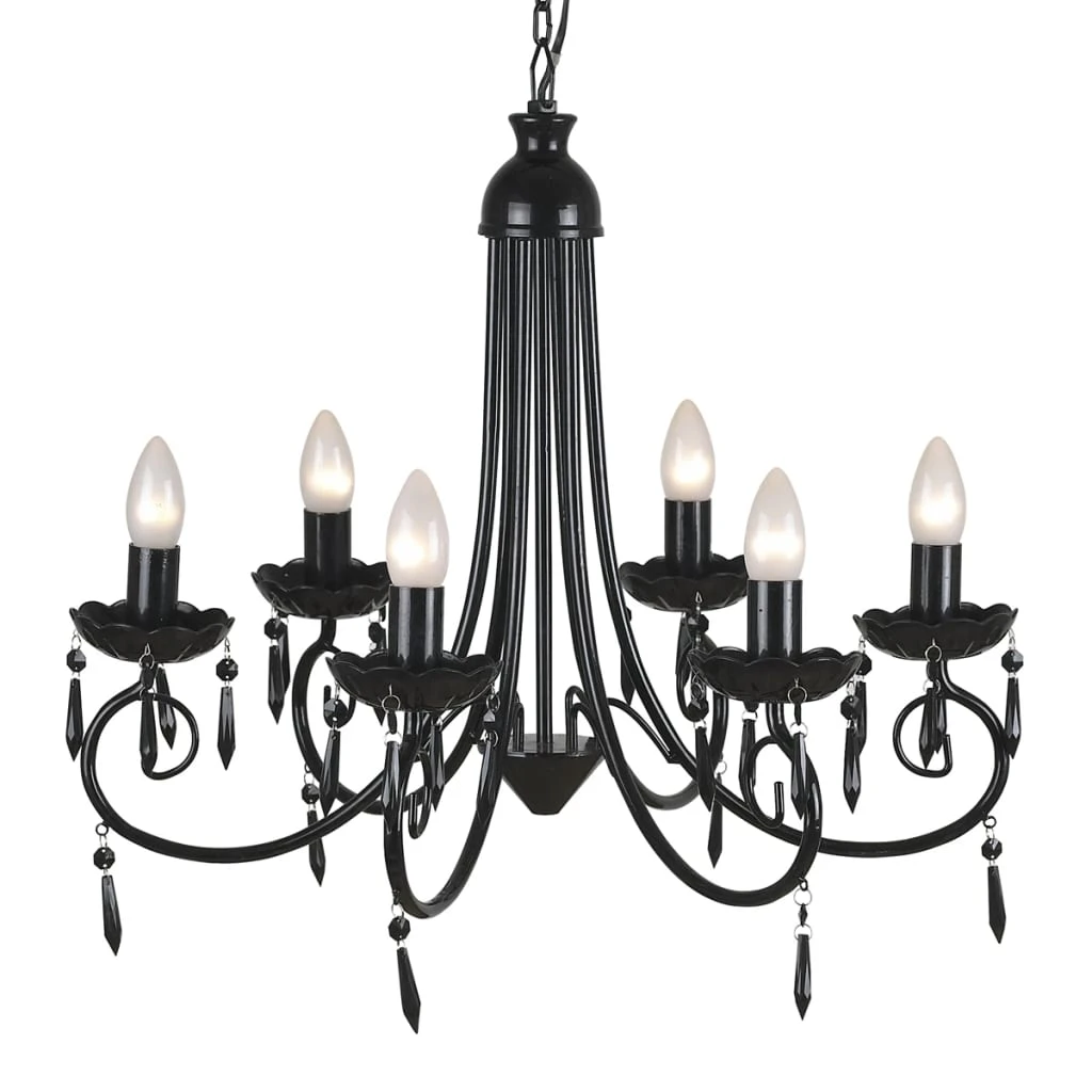 vidaXL lustra ar pērlītēm, melna, 8 x E14 spuldzes