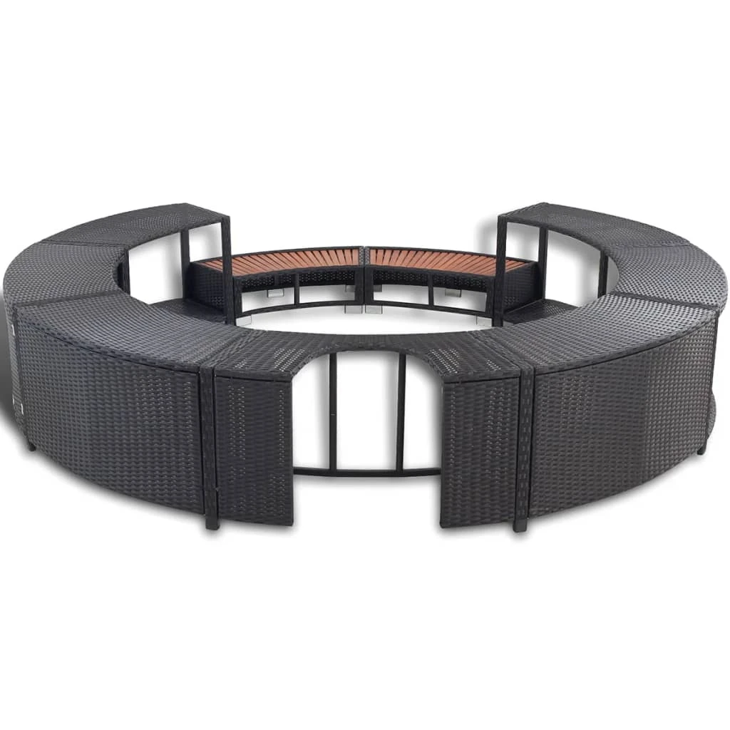 Stilīgais polietilēna rotangpalmas pinuma burbuļvannas aizsargloks ir universāls aksesuārs jūsu spa. Tas nodrošina elegantu un modernu burbuļvannas izskatu, radot praktisku un lietotājam draudzīgu spa zonu.