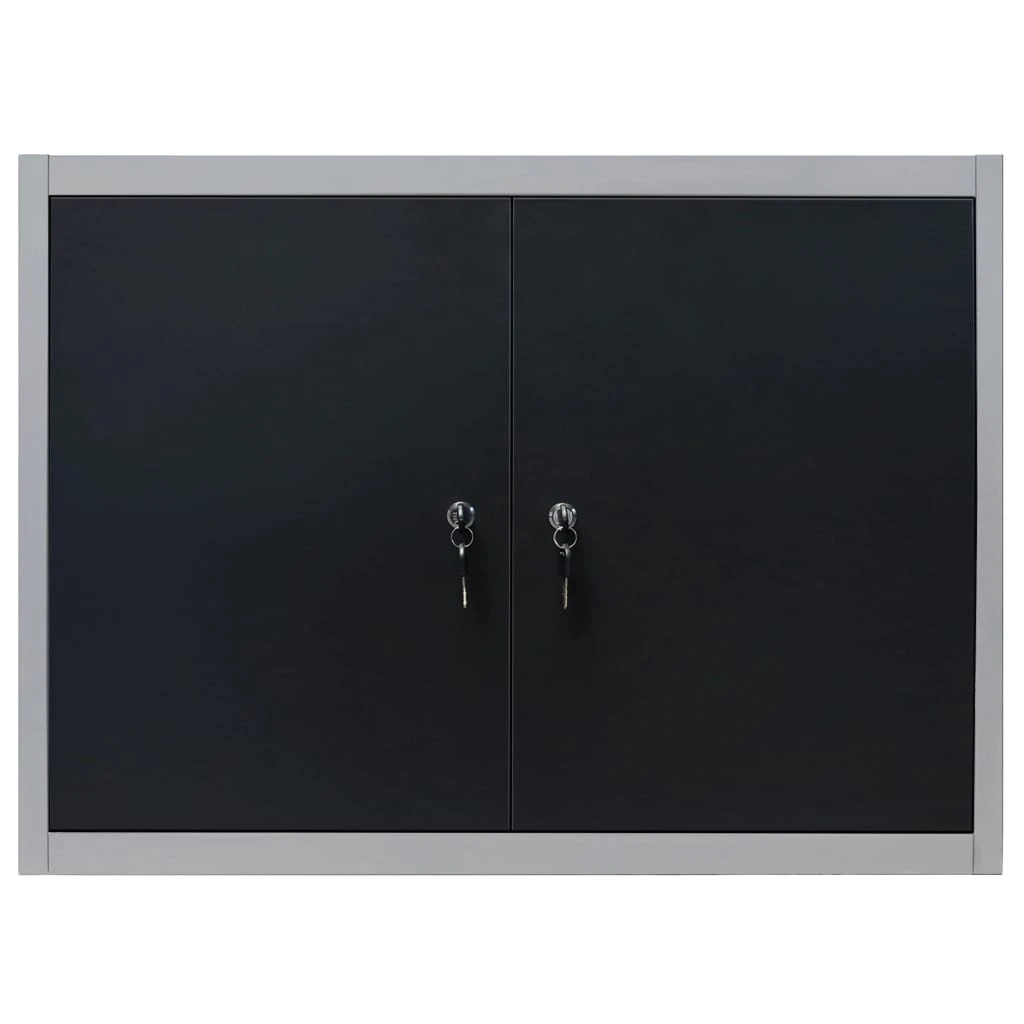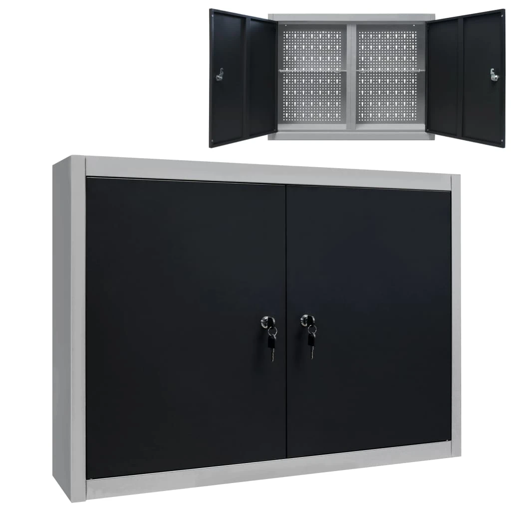 vidaXL sienas instrumentu skapis, melns un pelēks metāls