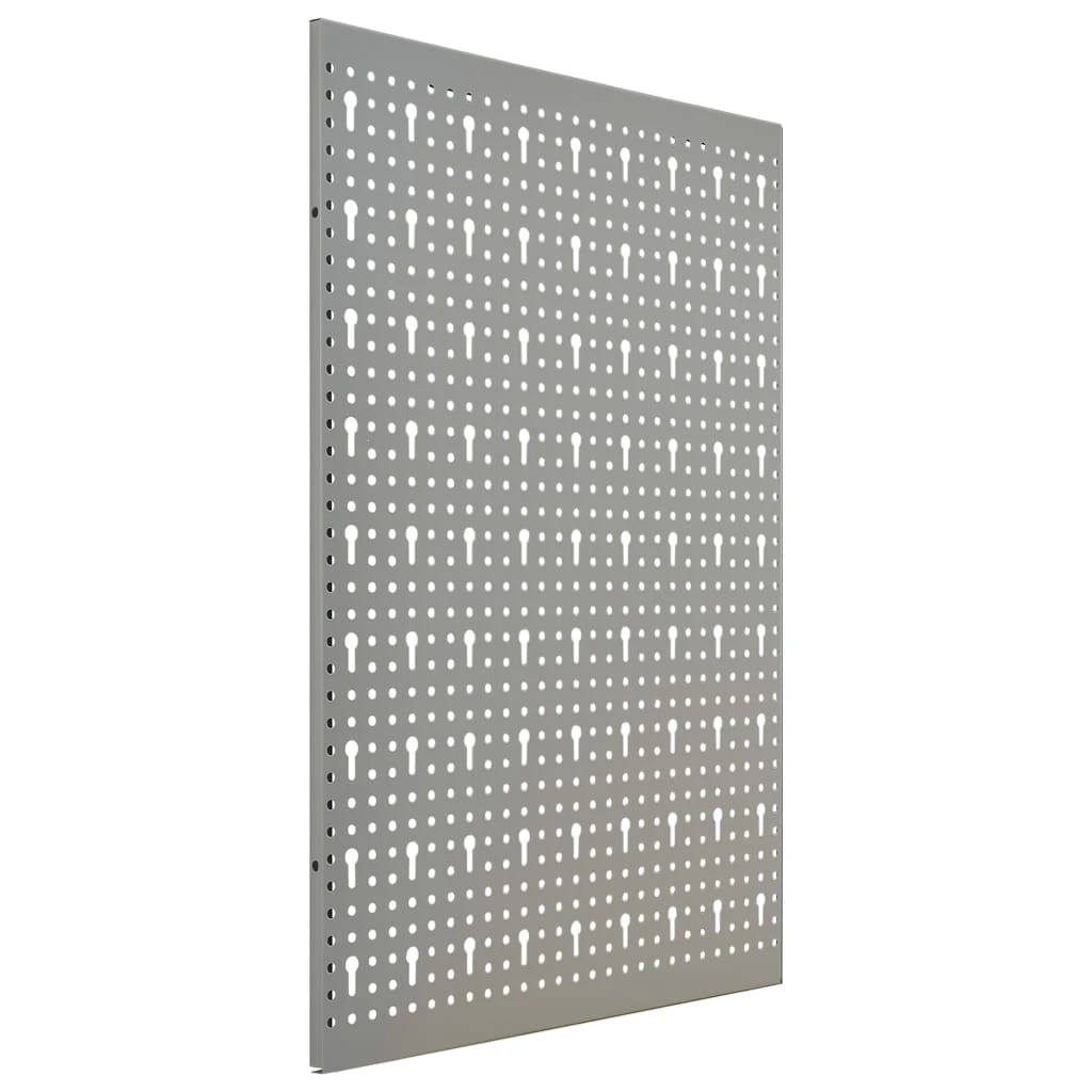 Paneļi ir izgatavoti no izturīga tērauda, tādēļ tie izturēs dažādu instrumentu svaru un kalpos daudzus gadus. To caurumotajā virsmā var droši nostiprināt knaibles, urbjus, skrūvgriežus un uzgriežņu atslēgas. Lai nodrošinātu īpašu izturību, šos 3 sienas paneļus var savstarpēji savienot. 120 cm platie paneļi lieliski papildinās jūsu darbagaldu un darbnīcas skapīšus.