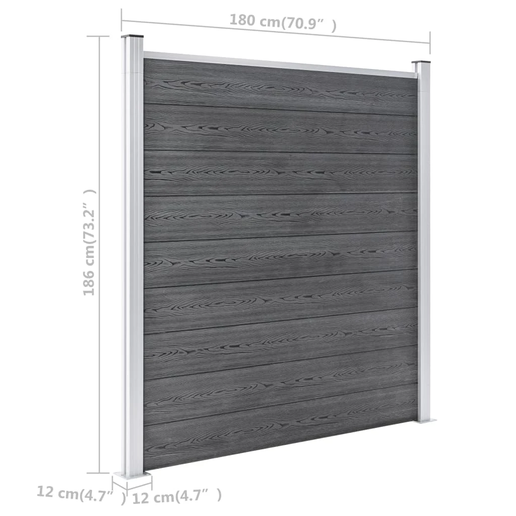 vidaXL dārza žogs, pelēks, 699x186 cm, WPC