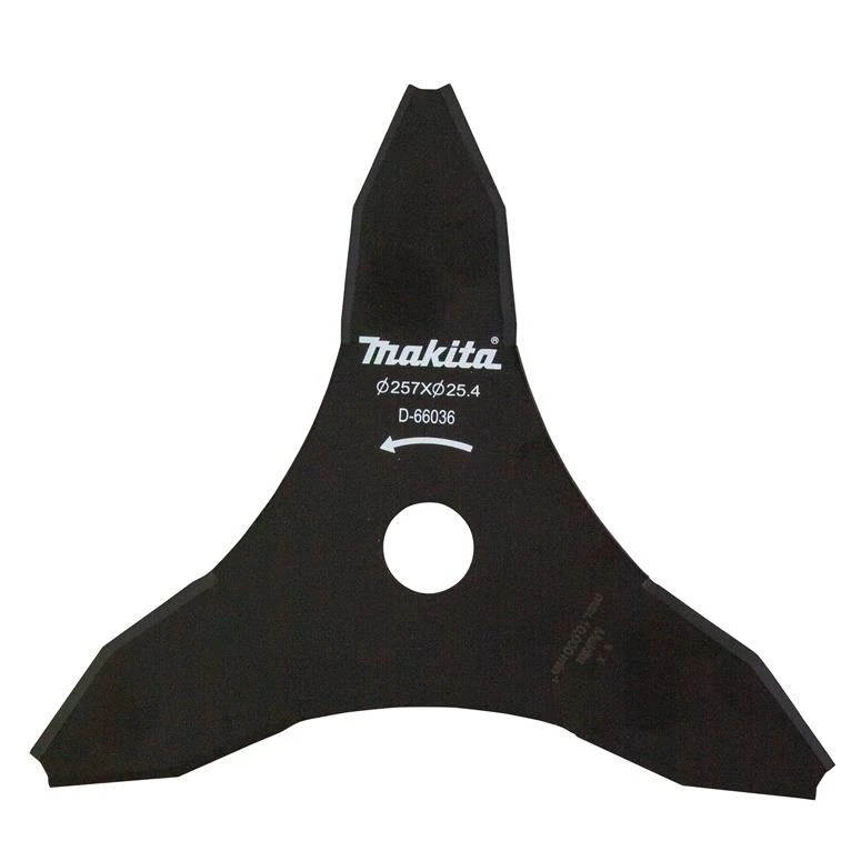 Zāles pļāvēja piederuma tips - Griešanas asmens. Zīmols - Makita. Modelis - 3-zobu krūmgrieža asmens 255mm. Artikuls - D-66036. Garums - 25.7 cm. Platums - 25.7 cm. Diametrs - 257 mm. Materiāls - Metāls. Darba platums - 25.7 cm. Garantija - 24 mēn.