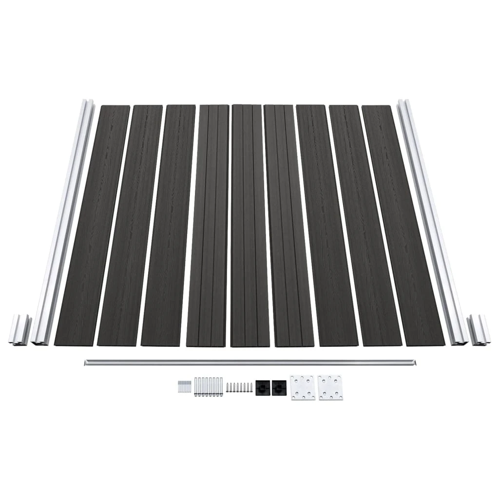 - Materiāls: WPC (koka-plastmasas kompozītmateriāls), alumīnijs, tērauds