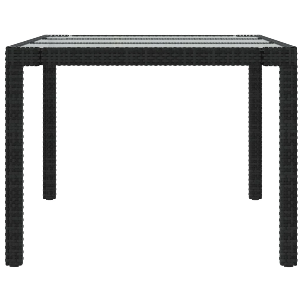 vidaXL dārza galds, melns PE rotangpalmas pinums un stikls