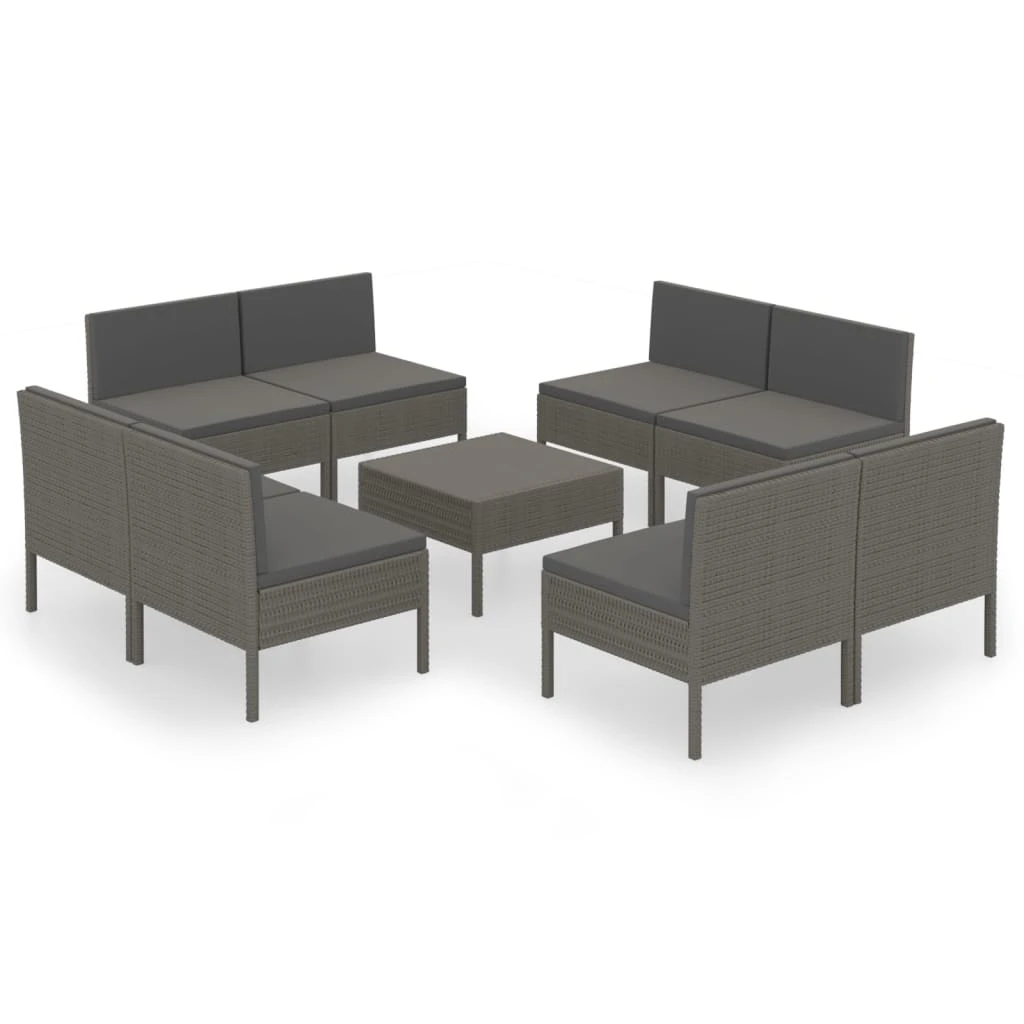 vidaXL 9-daļīgs dārza mēbeļu komplekts, matrači, pelēka PE rotangpalma