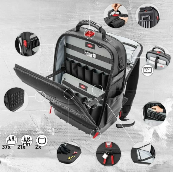 Aprīkots ar 16 KNIPEX instrumentiem, kopā 22 zīmola instrumentiem.