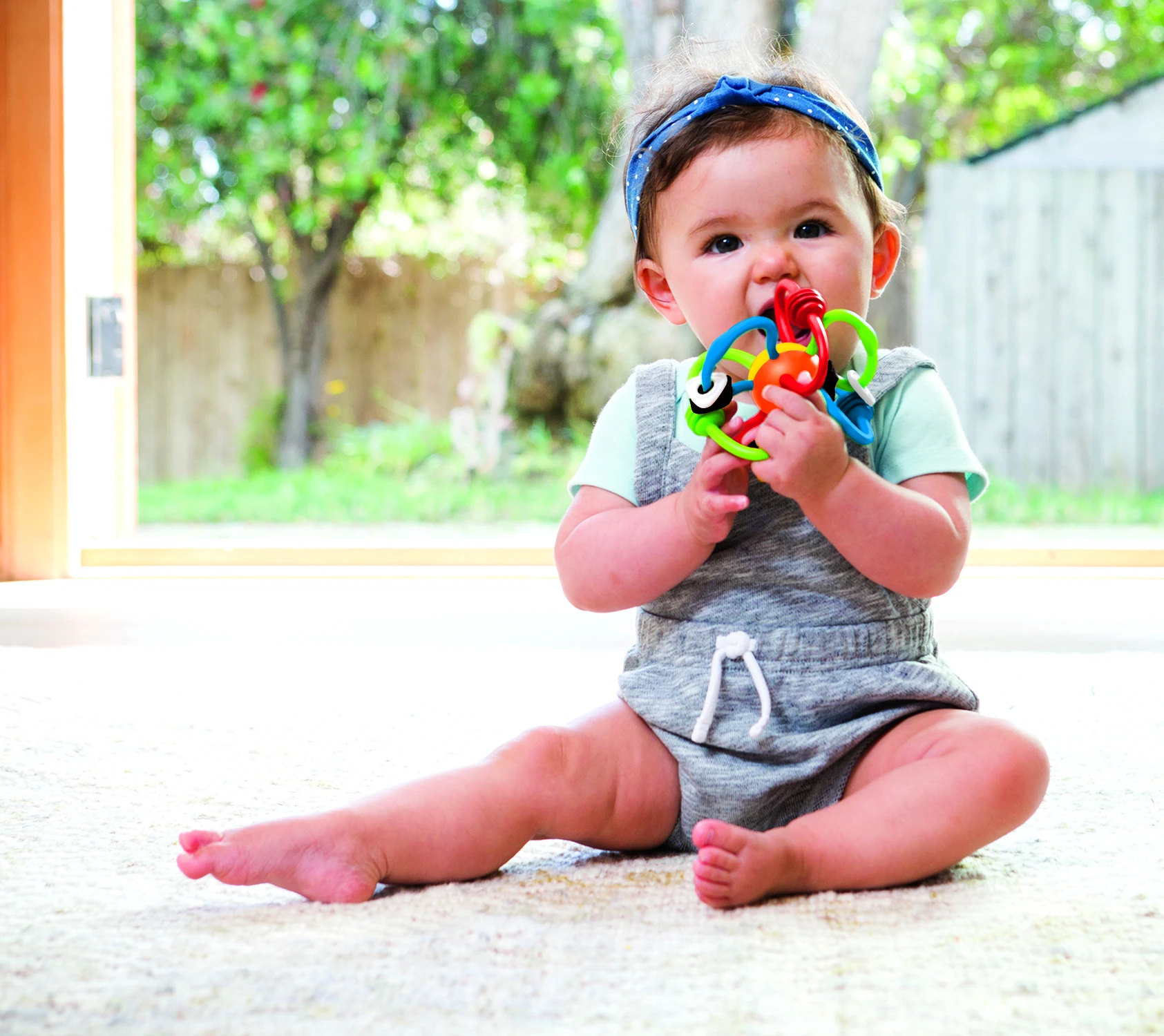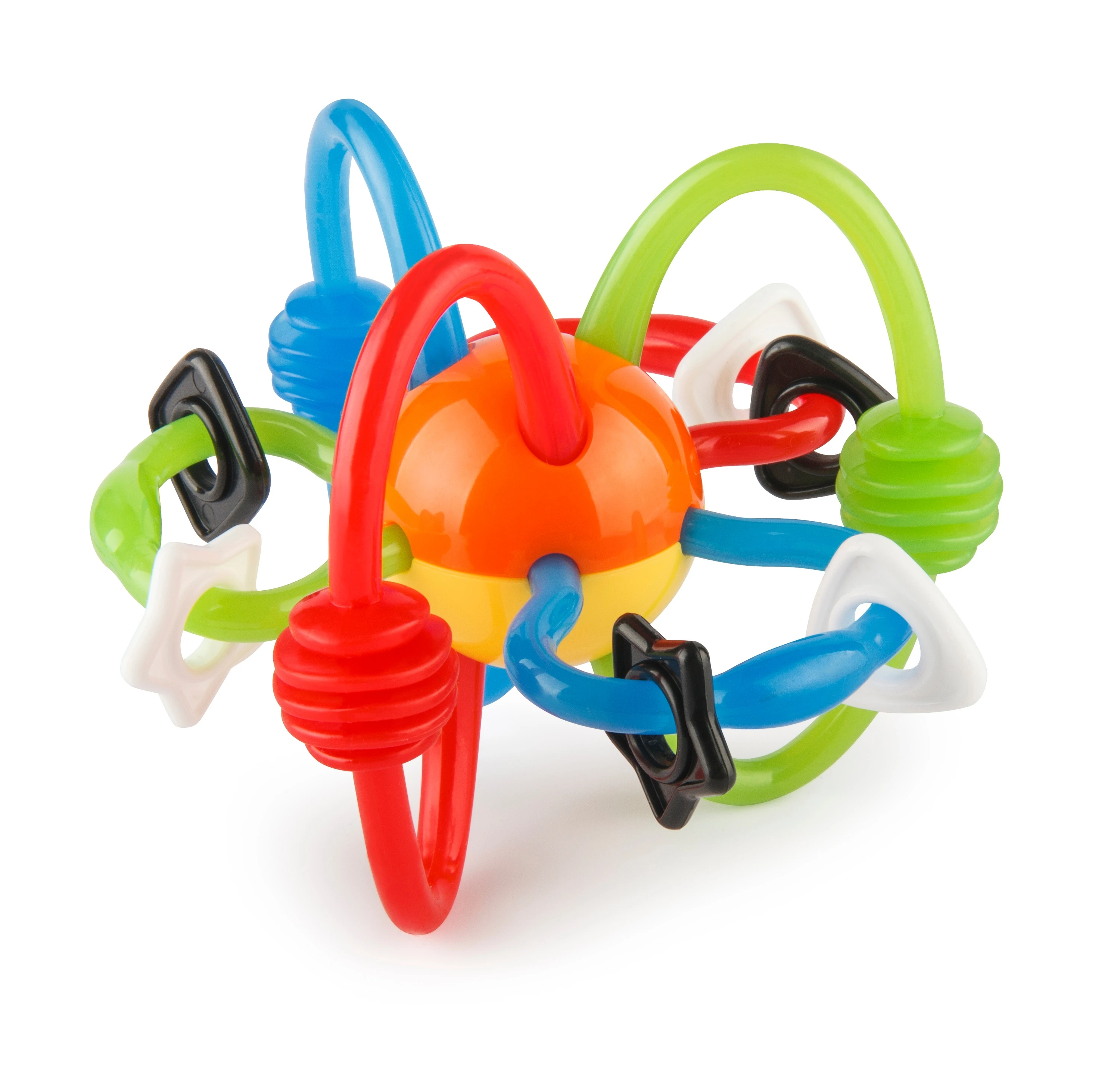 Infantino Shake & Teethe elastīgais grabulis noteikti kļūs par jūsu mazuļa mīļāko rotaļlietu. Šis grabulis ir košās krāsās un ar gredzeniem, kas saskaras. Centrālajā bumbiņā esošo pērlīšu troksnis piesaista mazuļa uzmanību un rosina koncentrēšanās prasmes. Tas ir ļoti viegls, lai mazulis to varētu ērti noturēt. Šis grabulītis ir ideāli piemērots mazuļa maņu un motorikas attīstīšanai, jo tā gredzeni rotē. Nesatur BPA, to ir ļoti viegli satvert un lietot ar mazām rociņām bez jebkāda riska.