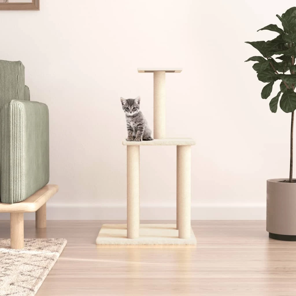 vidaXL kaķu māja ar sizala stabiem nagu asināšanai, 82 cm, krēmkrāsas