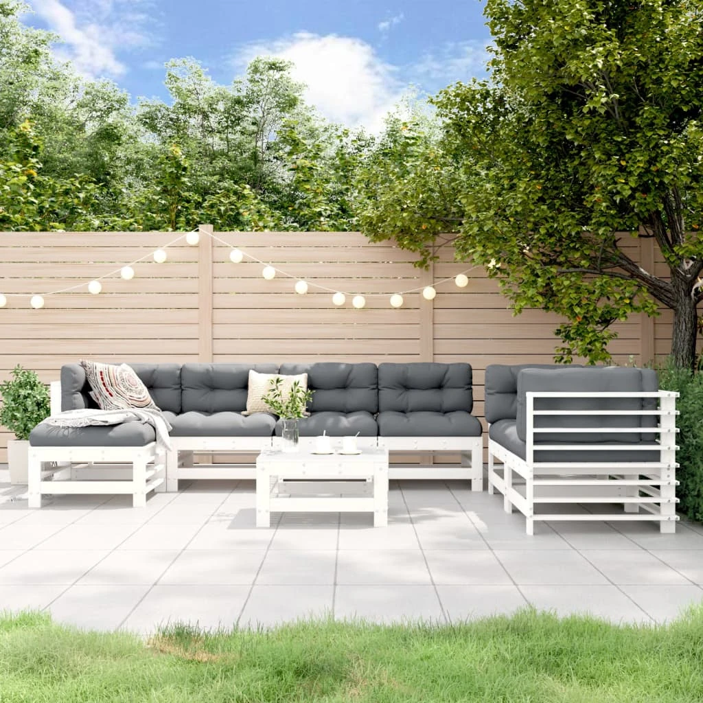 vidaXL 8-daļīgs dārza mēbeļu komplekts, balts priedes masīvkoks