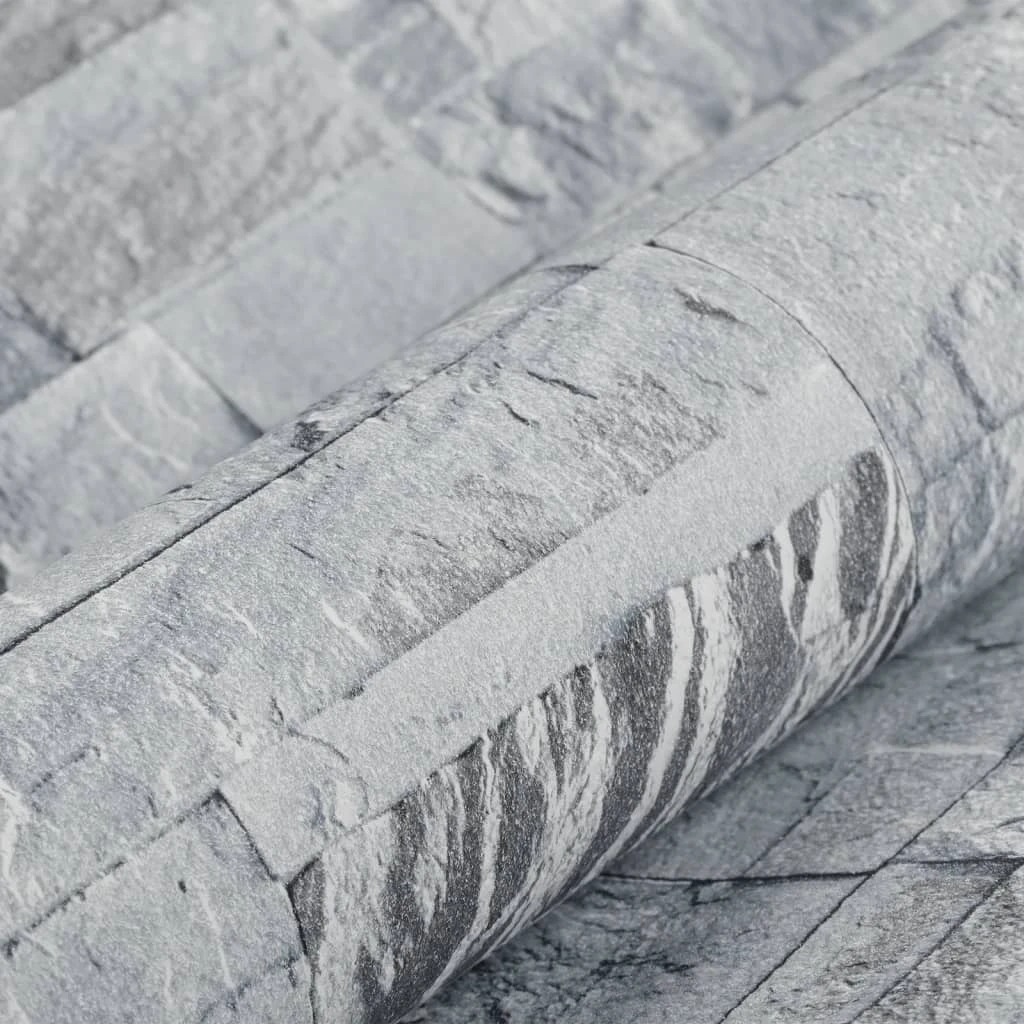 vidaXL tapete, 3D akmens dizains, melna, 10x0,53 m, neausta