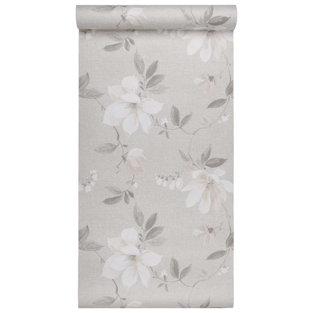 vidaXL tapete, 3D ziedu dizains, pelēka, 10x0,53 m, neausta