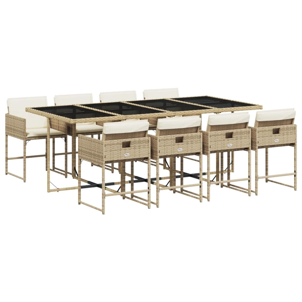 vidaXL 9-daļīgs dārza mēbeļu komplekts ar matračiem, PE rotangpalma