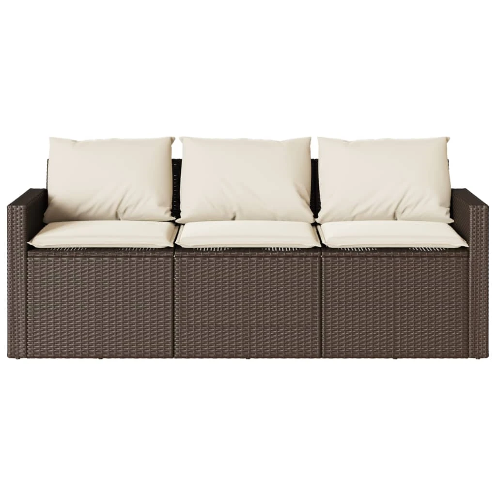 vidaXL trīsvietīgs dārza dīvāns ar matračiem, brūna PE rotangpalma