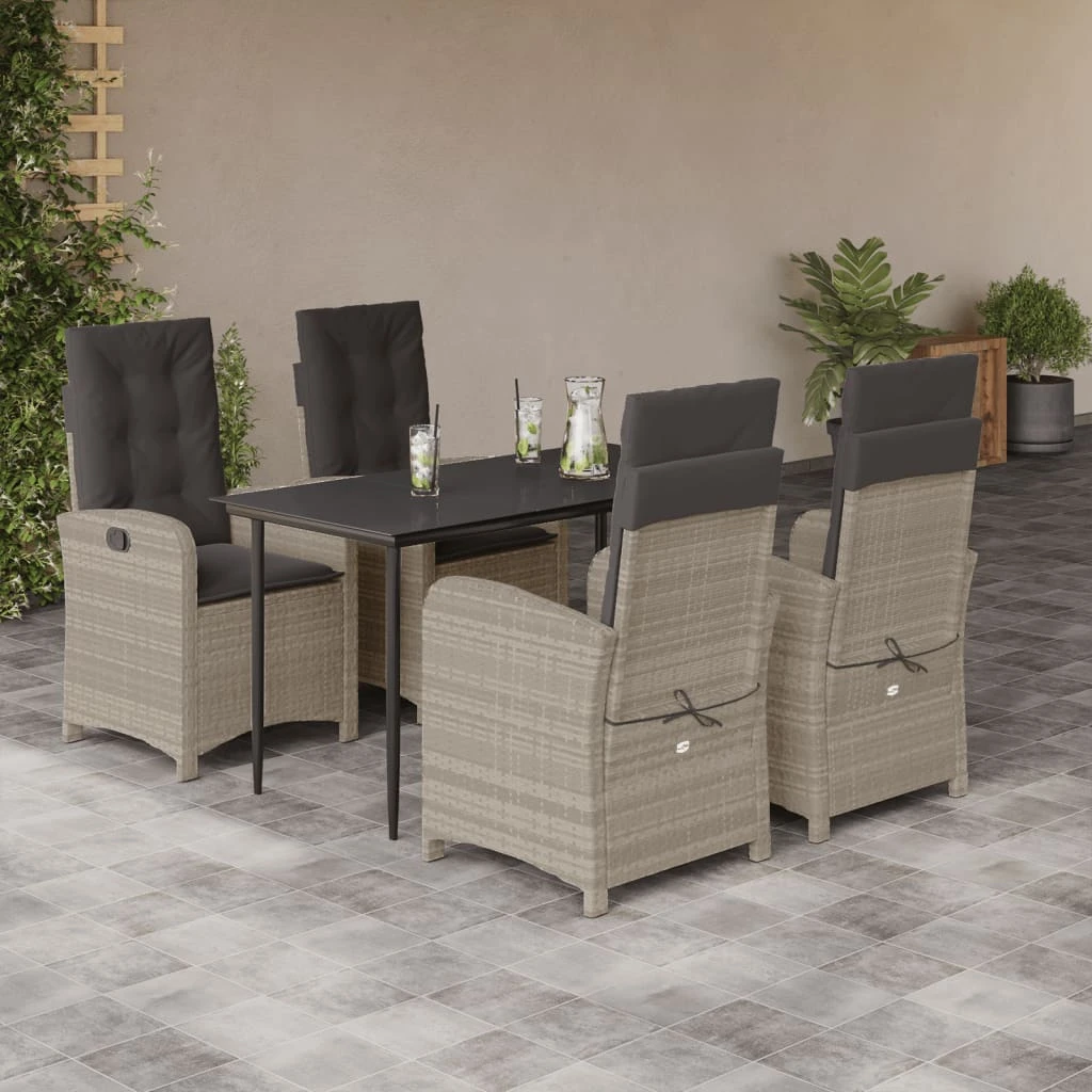 vidaXL 5-daļīgs dārza mēbeļu komplekts, matrači,gaiši pelēka PE pinums
