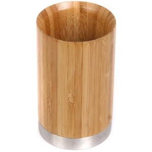 Stilīga glāze zobu birstēm ar lielu, apaļu atvērumu. Izmanto zobu birstēm un zobu pastām, ķemmēm, kosmētikas piederumiem u.c. Izgatavota no ilgtspējīga, ātri augoša bambusa, ar dabisku, pievilcīgi graudainu izskatu, pamatne no nerūsējošā tērauda. Izmēri Ø 6.8 cm, augstums 11.5 cm.