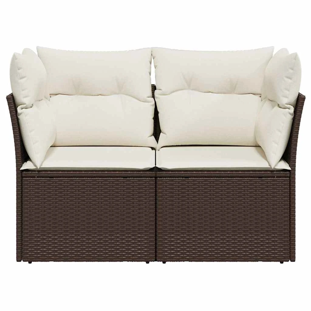 vidaXL divvietīgs dārza dīvāns ar matračiem, brūna PE rotangpalma