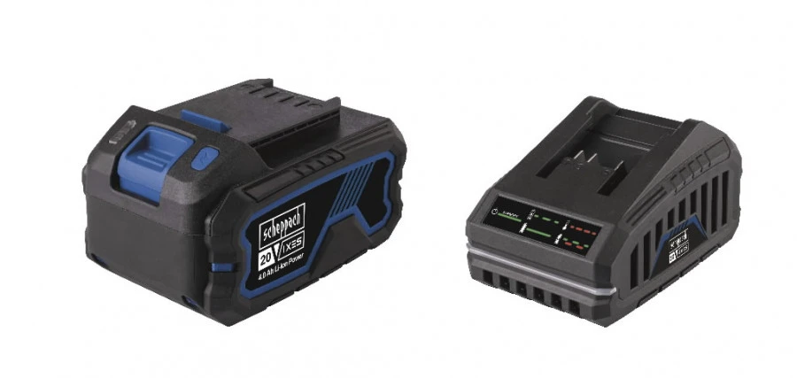 Scheppach SBSK4.0 starta komplekts ar GEN2 4,0Ah litija jonu akumulatoru un 2,4A lādētāju.