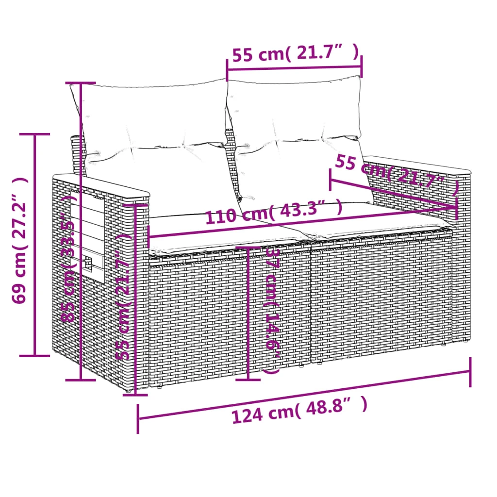 vidaXL 10-daļīgs dārza dīvāna komplekts, matrači, bēša PE rotangpalma