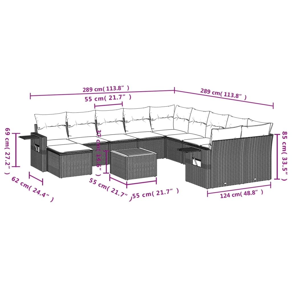 vidaXL 7-daļīgs dārza dīvānu komplekts, matrači, brūna PE rotangpalma