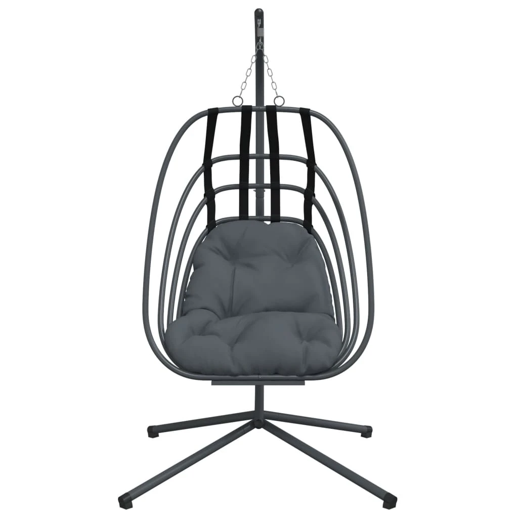 vidaXL piekarināms olu formas krēsls ar statīvu, antracīta krāsas tērauds