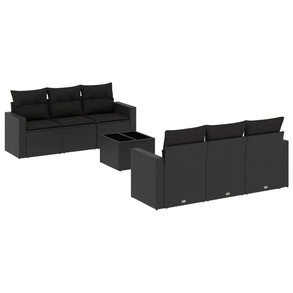 vidaXL 7-daļīgs dārza dīvāna komplekts ar matračiem, melna PE