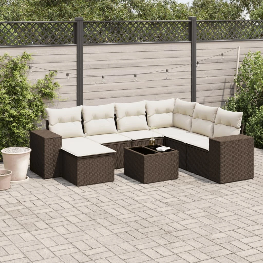 vidaXL 8-daļīgs dārza dīvāna komplekts, matrači, melna PE rotangpalma