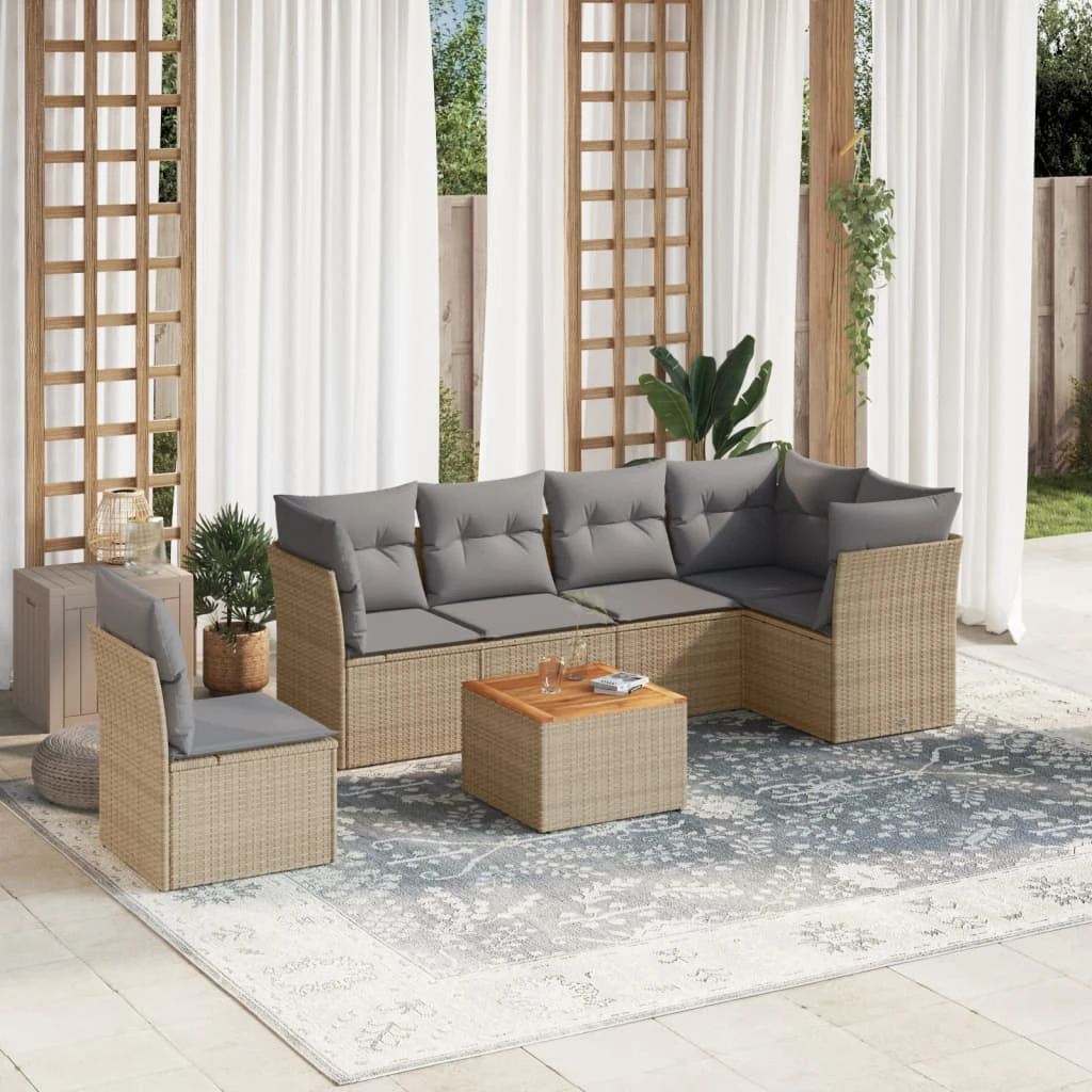 vidaXL Dārza dīvānu komplekts 6 pcs Bēša Poliūtu rotangpalma